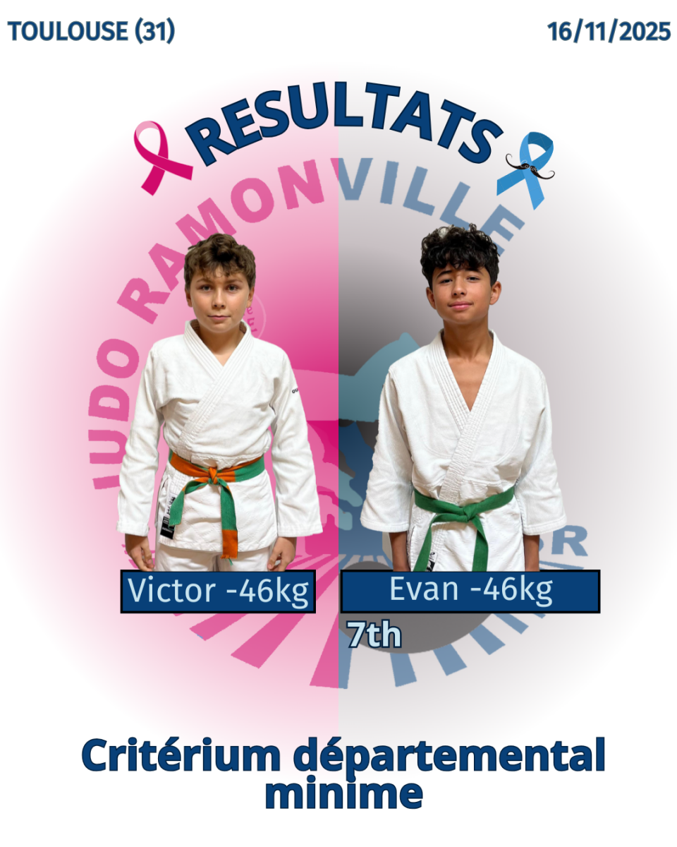 Dimanche 16 novembre à la maison du judo avait lieux le criterium départemental minime. 6 de nos ramonvillois étaient présents :